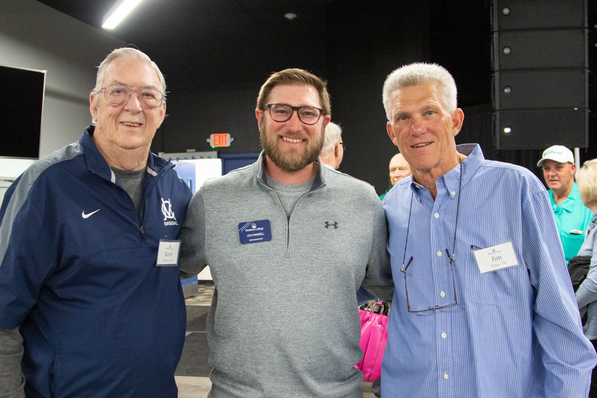 Kent Tekulve ’69 (left) and Jim Tracy ’78 (right) pose for a photo with Marietta College's Advancement Officer Levi Maxwell.